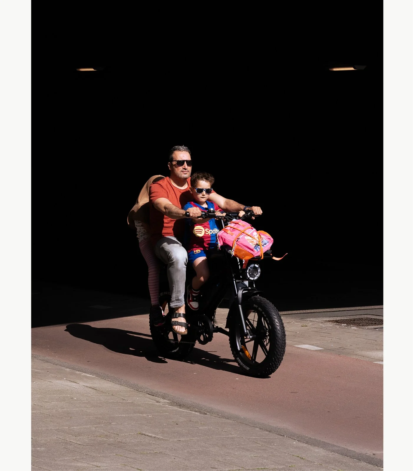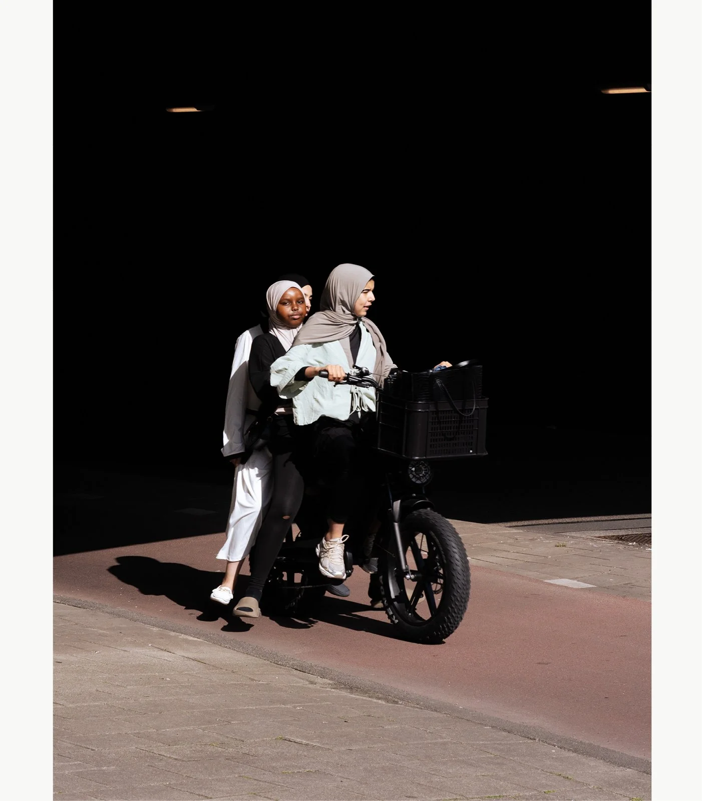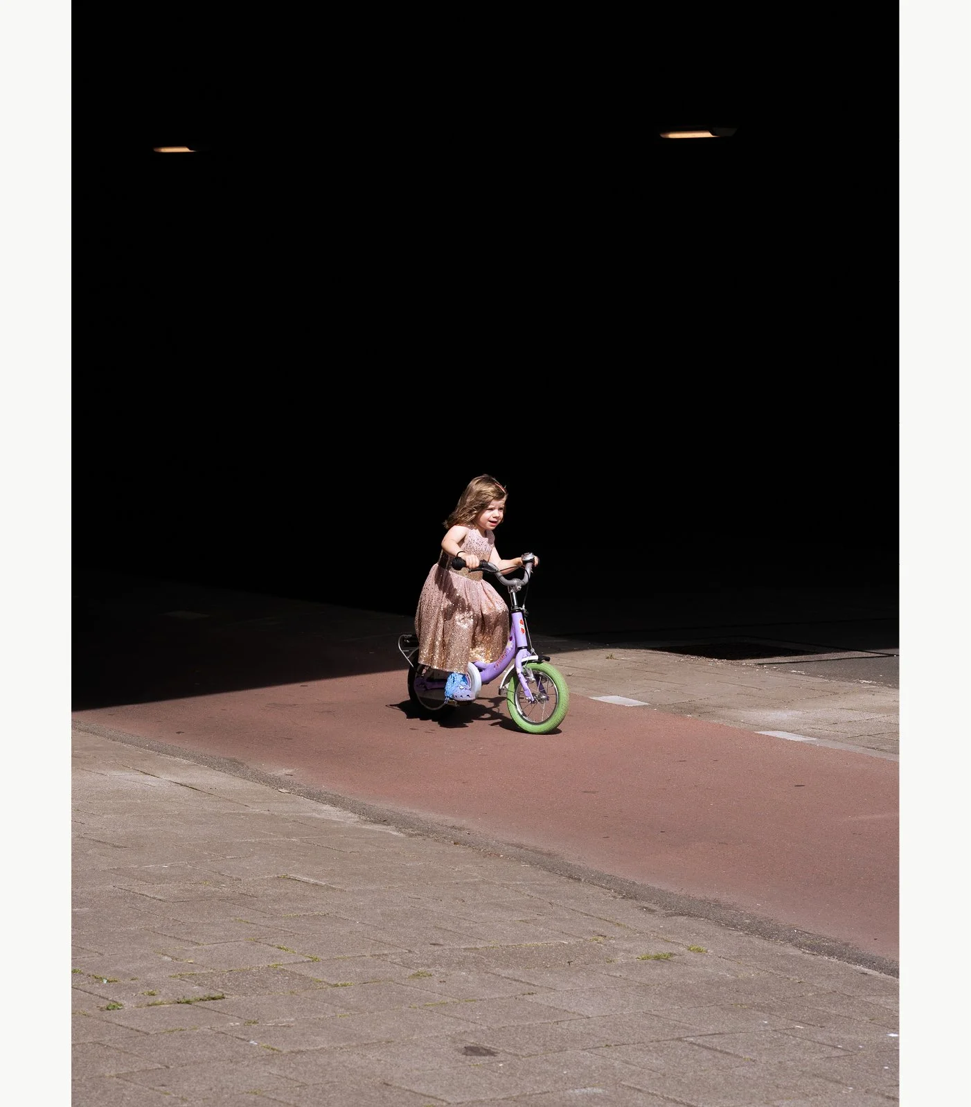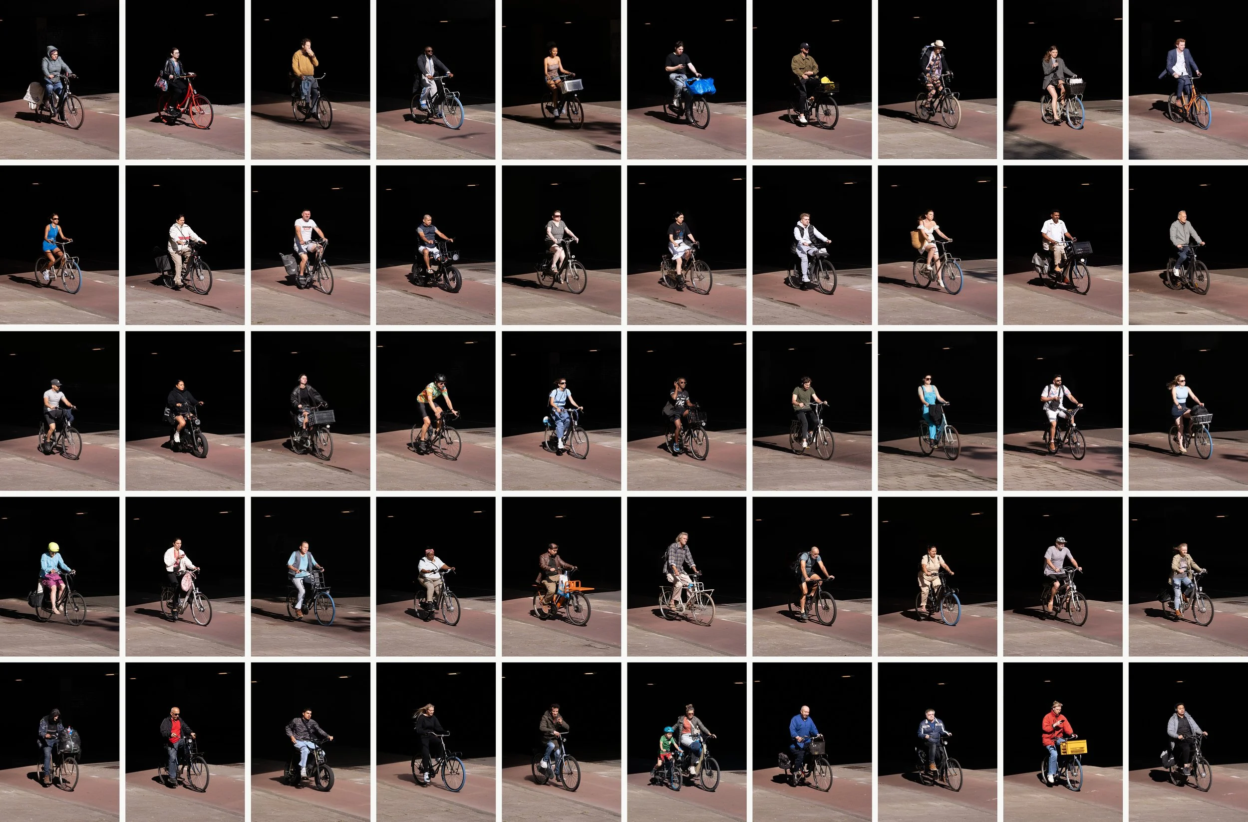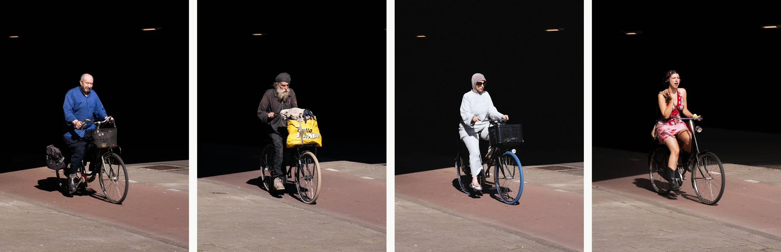 This series was shot over the course of two years at the same location between 8:30 a.m. and 10:30 a.m., capturing the vibrant tapestry of life in the Amsterdam suburb of Bos en Lommer through the simple act of cycling under a bridge.